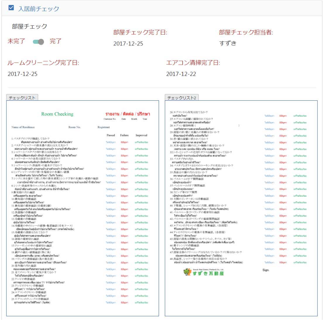 担当者によってチェックされたチェックリストを拡大して見ることが可能です。