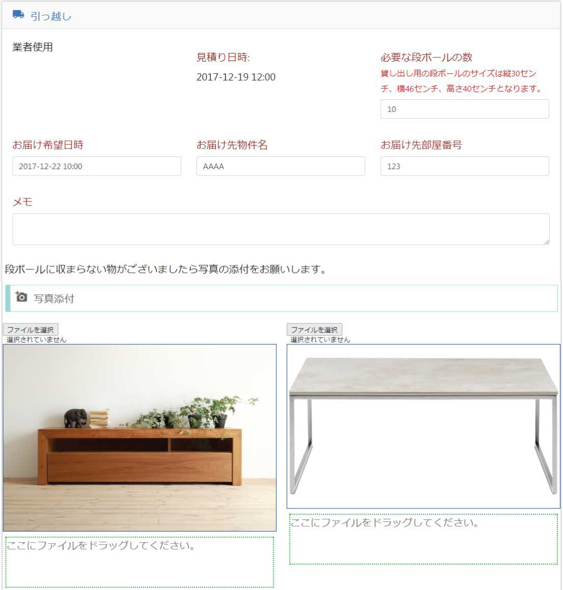 引越し業者を利用する場合はこちらに詳細情報を記載いただくと弊社に自動でメッセージが送信されます。