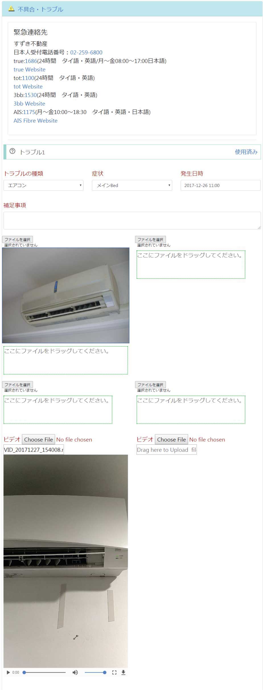 英語やタイ語が使えても普段使わない単語はなかなか出てこないこともあります。お部屋カルテのシステムを使えば日本語だけで全ての操作ができますし、写真や動画を撮影して説明することでより具体的な情報共有が可能になります。
