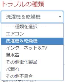 お部屋内の不具合またはトラブルについてはトラブルの欄に情報を追加ください。