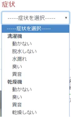 各項目はプルダウンの選択形式になっています。項目をクリックすると以下のようにプルダウンが表示されます。